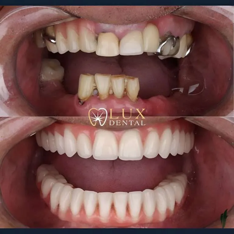 | Prótesis Híbrida | Solución fija que combina una estructura metálica con dientes de acrílico o cerámica, atornillada directamente sobre implantes para reponer tanto piezas dentales como tejido gingival. |